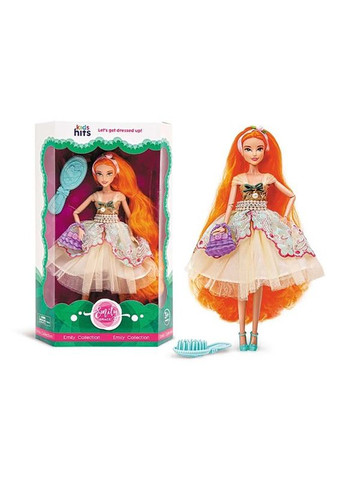 Лялька Kids Hits Emily Romantic з аксесуарами одягнена в гарне, романтичне вбрання - дизайнерську сукню з візерунками, у вінтажному стилі. А доповнюють її образ такі аксесуари, як пов'язка з квітами, туфлі та сумочка. У комплект також входить гребінець. Особливості: розкішне довге і густе волосся рудого відтінку; наявність рухомих шарнірних з'єднань частин тіла (це гнучкі коліна, лікті, зап'ястя); якісно віддруковані очі; виготовлена з високоякісного матеріалу. Висота ляльки: 28 см. Рекомендовано для дітей від 3-х років.