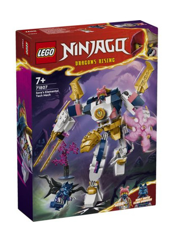 Діти можуть відтворити історію з другого сезону серіалу NINJAGO Повстання драконів за допомогою конструктора Робот технічної стихії Сори. Крутий робот має рухливі руки і ноги, які можна нахиляти і скручувати утичні бойові пози, великий меч, лезо, що обертається, і кабіну. У набір входять дві міні фігурки ніндзя — Сора з двома катанами та воїн із кігтями у вовчій масці — щоб діти могли розіграти захоплюючі пригоди ніндзя. Набір також можна створити за допомогою програми LEGO Builder, яка допоможе вам і вашій дитині в легкій та інтуїтивно зрозумілій будівельній пригоді. Рекомендовано для дітей віком від 7-ми років. Розмір упаковки 6 x 19 x 26 см