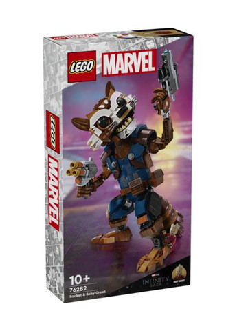 Підніміть пригоди Marvel на новий рівень завдяки набору LEGO Marvel Ракета та малюк Грут (76282). Ця доладна іграшка для хлопчиків і дівчаток віком від 10 років має автентичну деталізацію і досягає більше 22 см заввишки. Це не просто дитячий конструктор, ця фігурка Ракети – це реалістичне відтворення культового персонажа з фільму Вартові Галактики студії Marvel. Модель конструктора відбиває бунтарське ставлення героя та її любов до зброї. Усі суглоби (крім ліктів) рухливі для максимальних можливостей гри та демонстрації. У руках персонаж тримає пружинний шутер та бластер. На його плечі сидить його милий супутник, малюк Грут. Якщо ви шукаєте модні іграшкові конструктори для юних супергероїв набір LEGO Marvel Ракета та малюк Грут стане ідеальним вибором для дітей, які хочуть продемонструвати свій стиль супергероя. Якщо хочете додати цифрових розваг, можна масштабувати та обертати моделі в 3D, а також відстежувати прогрес, використовуючи цікаву та інтуїтивну програму LEGO Builder.