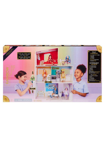 Ігровий набір RAINBOW HIGH – ВЕСЕЛКОВИЙ ТАУНХАУС – це 3-поверховий деревяний ляльковий будиночок, де ваші ляльки Rainbow High зможуть влаштовувати веселі вечірки та насолоджуватися життям!