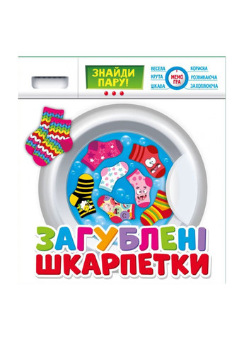 3 варіанта гри: Хапай скоріше! Мемо-шкарпетки Знайди пару (для самих маленьких). Під час прання всі шкарпетки переплуталися. Треба скласти їх попарно. Зробити це вдасться найспритнішому та найуважнішому гравцеві. Може, це саме ти? Зараз перевіримо! Розваги та гарний настрій гарантовані всім.