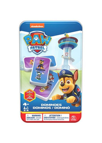 Доміно – це гра, яка знайома багатьом батькам та дітям. Для найменших дітлахів, які ще й рахувати не вміють, компанія Spin Master випустила доміно, на гранях кісток якого розміщені зображення улюблених героїв популярного мультсеріалу «Щенячий патруль». Завдання гри – викласти ігрові кістки, поєднуючи однакові зображення. Виграє той учасник, у якого на руках найменше кісток. Гра в доміно допомагає розвинути у дитини логіку, пам'ять та увагу. Ігровий набір включає 28 кісток, які зручно розташувалися в жерстяній упаковці! Грайте в задоволення! Гра призначена для компанії дітей віком від 2 до 4 осіб від 4 років.