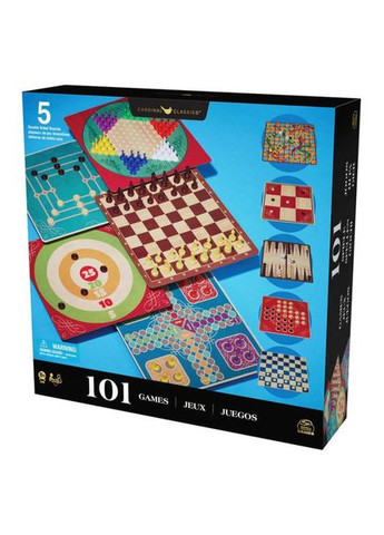 Класика, що ніколи не виходить з моди. Шахи, шашки, нарди, кістки та багато іншого в одному наборі! Набір Spin master 101 гра — обов'язково сподобається прихильникам весело та цікаво проводити час у компанії друзів. Підходить як справжнім поціновувачам цікавих та рідкісних ігор, так і гравцям-аматорам давно популярних бестселерів. В комплекті: шашки; китайські шашки; хрестики-нуліки; манкали; шахи; нарди; кістки; млин; багато математичних і логічних ігор з перенесенням паличок. До складу набору входять двосторонні ігрові поля для всіх ігор. У набір входить: 5 двосторонніх дошок для настільних ігор; 60 різнокольорових шашок; 40 сірників; 32 шахові фігури; 32 круглі фішки; 6 гральних кісток; інструкції. Безпрограшний варіант подарунка для любителів цікаво проводити час великою компанією! Набір «101 гра» чудовий спосіб прикрасити вечір зустрічі з друзями! Рекомендовано для дітей віком від 6-ти років.