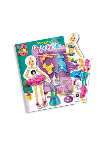У гардеробі у цієї дівчинки стільки нарядів! Але що ж вона вибере сьогодні? Допоможи їй визначитися! Розглянь уважно всі магніти, вибери образ і прикріпи ці елементи одягу до фігурки лялечки. Гра розвиває естетичний смак, логічне мислення, уяву і дрібну моторику. Комплектація: 1 лялька, 21 магніт, гральне поле. Характеристики: Вага товару: 1 Габарити: довжина: 24 Габарити: ширина: 17 Габарити: висота: 1 Стан: нове Вікова група: Від 3 років Матеріал: Картон /магніт Тип: Магнітні Колір: Різні кольори Упаковка: пакет Вид: Розвиваючі Вік: Від 3-х років Гарантія: 14 днів Стать: для дівчаток Країна реєстрації бренду: Україна Країна-виробник товару: Україна