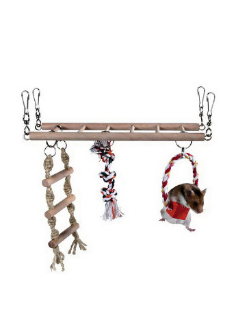 Для гризунів, що живуть у домашніх умовах, як аксесуар, що дає змогу почуватися захищеними, застосовується іграшка місток дерев'яний підвісний із канатами для гризунів 29х25х9 см, представлена відомим німецьким виробником зоотоварів Трикси. дерев'яна драбина, мотузкова драбина, мотузка для ігор і мотузкове кільце з дерев'яним бруком підвісний (з обох боків).