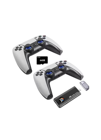 Ігрова приставка M8 PRO 64G, з 20000+ вбудованих ігор. Більш якісна версія приставки М8. Має 20000 вбудованих ігор, серед яких - Super Mario, Contra,Battle City,Mortal Kombat, Aladdin, Tekken 3, Crash Bandicoot, Delta Force, Blade, Ringe Racer та багато інших. Підтримує 9 емуляторів — Dendy, Play Station 1, Sega Mega Drive, Nintendo, Super Nintendo, Game Boy, Game Boy Advance, Atari. Інструкція на українській мові. Є можливість завантажити свої ігри. Під'єднання до всіх сучасних телевізорів за допомогою кабелю HDMI. Ігрова підставка має два бездротові джойстики у стилі PlayStation 5, джойстики живляться від двох батарейок ААА. Джойстики мають анатомічну форму, завдяки цьому дуже зручно лежать в руках. Характеристики: Тип приставки: Стаціонарна З'єднання з телевізором: HDMI Підтримка моніторів 4К З'єднання джойстиків: Бездротове Живлення адаптера: 5v Розмір HDMI адаптера: 95x40x10 мм Розмір джойстика: 150х120 мм Комплектація: Ігрова консоль (HDMI адаптер) Два бездротові джойстики Кабель живлення USB - micro USB Підсилювач HDMI Бездротовий адаптер джойстиків