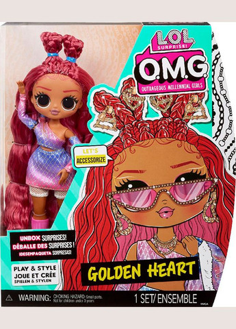 Модна лялечка Золоте Серце серії O.M.G. S7 - справжня модна фея. Вона обожнює блискучий одяг та красиві аксесуари. У неї приголомшливе почуття стилю. Велика та яскрава лялечка висотою 27 см, модний одяг, шикарне волосся, стильні аксесуари. Багато сюрпризів під час розпакування ляльок L.O.L. Surprise (ЛОЛ Сюрприз) серії O.M.G. Лялька має шарнірні руки, що дає змогу вигадувати ще більше цікавих сценаріїв для гри. Підставка для ляльки може бути як підставкою, так і стільцем. До ігрового набору входить: Модна лялька L.O.L. Surprise (ЛОЛ Сюрприз) серії O.M.G. Одяг Взуття Сережки Сумочка Гребінець для волосся Підставка для ляльки Аксесуари Гра з лялечкою L.O.L. Surprise (ЛОЛ Сюрприз) розвиває в дитині креативність, уяву та вміння грати. Рекомендовано для дітей віком від 3 років.