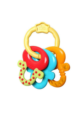 має цікаву та зручну форму, яка дозволяє малюкові тримати брязкальце навіть однією рукою
