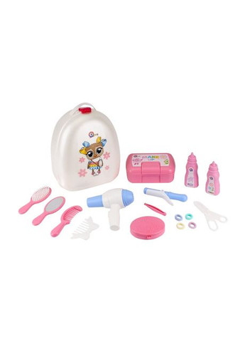Перламутровий рюкзачок з великою рожевою косметичкою для маленьких принцес! Так, це дійсно зручно та гарно. У ньому стільки красивих та необхідних для щоденного догляду аксесуарів. Особливості: Гребінець, щітка, фен і плойка для розчісування волосся та цікавих зачісок. В наборі є справжні резинки та заколка гребінець - можна зробити різноманітні хвостики та косички. Всі дрібні аксесуари зручно зберігати у великій рожевій косметичці, яку можна брати з собою у садочок, на прогуляну чи в гості до друзів. Тепер все необхідне під рукою, щоб поправити макіяж та зачіску.