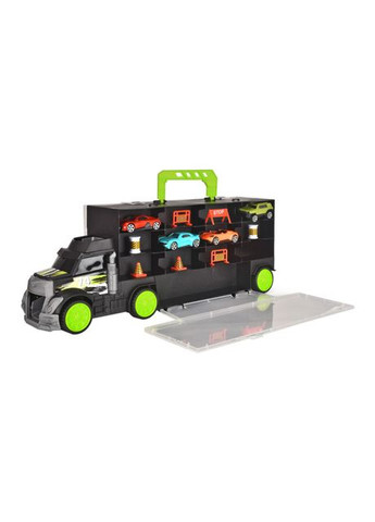 Набір машинок Dickie toys Трейлер-перевізник автомобілів чудова можливість розпочати цікаву колекцію!Завдяки цьому комплекту діти зможуть створити власну вулицю з автомобілями та дорожніми аксесуарами. У трейлері поміщається аж 28 машинок — нічого собі колекція, правда? Також він оснащений зручною ручкою для переноски.Гра з комплектом сприяє розвитку дрібної моторики, координації рухів, концентрації уваги.У наборі:трейлер з прозорими бічними частинами, які відчиняються;4 різні машинки;7 аксесуарів.Підходить для дітей віком від 3-х років.