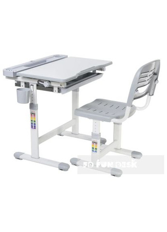 Лампа та підставка для книг у комплекті! Ергономічний, компактний, регульований по висоті комплект учнівських меблів. Поверхня навчального столу FunDesk Littonia Pink можна нахиляти до 30° для зручного письма, читання та малювання. Є пенал на робочій поверхні для канцелярських предметів. Під стільницею розташована висувна полиця, що забезпечує достатньо місця для зберігання книг та канцелярського приладдя. Стілець FunDesk має перфорацію для забезпечення циркуляції повітря до тіла дитини, що особливо актуально влітку. Наявність багатоступінчастого механізму регулювання висоти дозволяє комплекту «рости» разом із вашою дитиною, сприяє формуванню правильної постави завдяки ортопедичним опціям. Характеристики: Регульовані по висоті стіл та стілець Сприяє гарній поставі та здоровому зору Місткий ящик для зберігання книг та зошит Стільницю можна нахилити до 30 градусів Спеціально розроблений виріз дозволяє правильно розташовуватися за столом, і комфортно розташовувати лікті при листі та малюванні. Гратчастий дизайн стільця для оптимальної вентиляції Присутній пенал на робочій поверхні для канцелярських предметів На ніжці парти розміщено гачок для портфеля Рекомендований вік від 3 років Призначена для дітей зростом від 110 до 170 см. Специфікація Матеріал: Сталь, ABS пластик, поліпропілен, ДСП класу E0 Розміри парти 800x505x547~727мм Розміри стільниці 800х505мм Розмір похилої частини 800x505 мм Діапазон нахилу робочого столу 0 ° ~ 30 ° Механізм нахилу робочого столу Пневматичний важіль Діапазон висоти столу 547 ~ 727 мм Комплектація: Стіл - 1шт Стілець - 1шт Лампа Підставка для книг