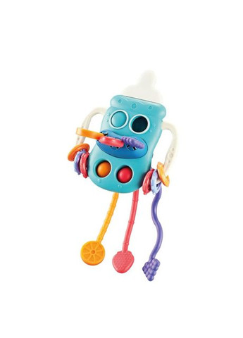 Брязкальце Монтессорі для малюків Розвиваюче брязкальце прорізувач для зубів Пляшка — це яскрава, цікава, логічна іграшка-брязкальце для дітей від 6 місяців, яка допоможе зацікавити дитину та зайняти її на довгий час, розвинути дрібну моторику та сприяє розвитку мовлення. Цікаве брязкальце для розвитку сенсорики у формі дитячої пляшечки з прорізувачем зубів у формі соски стане улюбленою іграшкою малюка. Сенсорна розвивальна іграшка з гнучкими й еластичними силіконовими трубками для розвитку дрібної моторики, зорово-моторної координації, хапального рефлексу, тактильного сприйняття, зміцнення м'язового тонусу пальчиків. Можливе використання як гризунця, у період прорізування молочних зубів у малюків. У корпус іграшки також вбудовані м'які пупирки "pop it". Безпека та ергономічність Гумовий наконечник і бічні ручки роблять іграшку зручною для захоплення маленькими ручками і водночас безпечною для ніжних ясен і зубів дитини. Творче задоволення Різноманітність елементів в іграшці надає дитині багато можливостей для гри та розвитку творчості. Ваш малюк може: тягнути гумові шнури, грати зі звуками брязкальця або натискайте та пересувайте кнопки, Сенсорна стимуляція Наша іграшка створена з розрахунком на всебічний розвиток дитини. деренчання, гумові шнури з фруктовими закінченнями і кнопки popit забезпечують різноманітні сенсорні введення, які залучають чуття вашої дитини та сприяють їх розвитку. Переваги іграшки-брязкальця Монтессорі: Ця кумедна інтерактивна іграшка виготовлена з харчового силікону та АБС-пластику, 100% безпечного матеріалу, нетоксична, не містить BPA і фталатів. Легко мити. Іграшки з харчового силікону можуть полегшити дискомфорт дитини під час прорізування зубів, заспокоїти її емоції та дати змогу дитині впевнено жувати. Бічна частина іграшки обладнана м'якими кнопками, які спонукають дитину торкатися й натискати, тренуючи гнучкість мізинців. Текстуровані нитки можна тягнути з боку в бік, щоб дитина могла відчувати різноманітні звуки та вібрації. Краї та поверхні іграшки гладкі й без шипів, тому вони не травмують ніжну дитячу шкіру та дають змогу малюкам легко братися за неї. Іграшка Монтессорі має форму космічного корабля, щоб стимулювати цікавість і уяву вашої дитини. Багате та яскраве поєднання кольорів може сприяти розпізнаванню кольору дитини, привернути увагу дитини. Моторна мотузка, яку тягнуть вгору та вниз, може сприяти розвитку в дитини дрібної моторики та зорово-моторної координації, щоб дитина могла зануритися у світ розвивальних ігор. Сенсорна розвивальна іграшка підходить для дітей від 6 місяців до 3 років. Портативний розмір підходить для подорожей в автомобілях, поїздах і літаках. Гарні туристичні подарунки для дітей! Чудовий подарунок для дітей. 5в1 Прорізувач - ідеальний для дітей в період прорізування зубів. Його м'яка структура заспокоює біль в яснах, а різноманітні текстури стимулюють відчуття дотику. Брязкальце - бічні ручки мають кільця, які видають брязкаючий звук. Сенсорна іграшка - підтримує розвиток органів зору, дотику та слуху, забезпечуючи комплексну стимуляцію. Іграшка-буксир - три гумові мотузки з фруктовими тяговими кінцями допомагають розвивати силу та координацію рухів вашої дитини. Кнопки Popit - ці інтерактивні елементи вчать точним рухам і координації рук і очей. Те