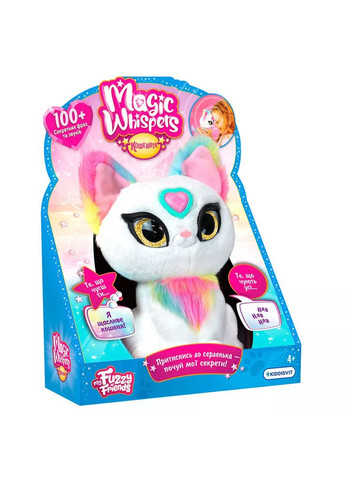 Ласкаво просимо у світ Magic Whispers – де чарівні кошенята діляться добрими секретами, відповідають на запитання та жартують так, що смієшся тільки ти. Приклади їх серце до свого чола або до вуха - і почуєш особливе повідомлення, яке підтримає, розважить або просто подарує тепло. Кошеня Magic Whispers - це пухнаста іграшка-друг, яка шепоче тільки для тебе. Основні функції: Більше 100 секретних фраз та звуків, серед яких: слова підтримки, чарівні секрети, жарти, загадки та відповіді на запитання. Чарівне світлове серце сяє різними кольорами залежно від режиму гри. 3 режими гри, які перемикаються стиском лівого вушка: Таємний Кітті-Чат - кошеня шепоче ніжні фрази: "З тобою так весело", "Повір у себе", "Хочеш обійнятися?". Це добрі, теплі та надихаючі повідомлення, які чуєш лише ти. Для активації приклади серце до свого чола або до вуха. Питання-Відповідь - задай кошенятку будь-яке питання з відповіддю «так» чи «ні», потім доторкнися серцем до чола. Кошеня відповість: «Так!» або «Ні!», іноді додаючи кумедний коментар. Дотепне кошеня - режим веселих питань та жартів. Наприклад: «Чи мають коти суперсилу?» - «Так! Його суперсила – просити їжу самим поглядом.». Технологія кісткової провідності звуку – звук передається безпосередньо тобі, коли серце стосується твого чола чи вушка, і його чуєш лише ти. Автоматичний режим сну – кошеня засинає після деякого часу без взаємодії. Також можна покласти його спати вручну, затиснувши вушко на кілька секунд. Розмір іграшки: близько 17,5 див. Живлення: 3 батареї типу AAA (не входять до комплекту). У комплекті: інтерактивна іграшка, Інструкція. Рекомендовано для дітей віком від 4 років. Характеристики: Розвиває - Емоційний розвиток, Вміння грати, Кругозір; Звук – є; Живлення - 3 батареї AAA не в комплекті; Серія – Magic Whispers; Бренд – My Fuzzy Friends; Світло - Так; Батарейки входять у комплект - Ні; Вік – 4-10; Звук (укр.) – є; Країна походження – КНР; Розмір іграшки без пакування довжина – 10,5; Розмір іграшки без упаковки ширина – 10,7; Розмір іграшки без пакування висота – 16,2; Вага іграшки без упаковки – 0,202; Розмір іграшки в упаковці ширина – 9; Розмір іграшки в упаковці висота – 25,4; Розмір іграшки в упаковці довжина – 19,2; Обмеження за віком – до 24 місяців; У комплект входить - 1 інтерактивне кошеня, інструкція; Гарантія – Гарантія не поширюється; Матеріал – комбіновані матеріали: поліестер, пластик, метал; Термін придатності, міс. - необмежений;