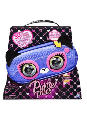 Інтерактивна сумочка на пояс Гепард Purse Pets Підкресліть свій образ сумочкою на пояс Purse Pets Гепард! Це чудовий та функціональний інтерактивний аксесуар для дівчаток, доповнений стильними елементами. Сумачка реагує на ваші дотики, має гепардові плями, що світяться різними кольорами та більше 30 захоплюючих звуків та ефектів. Гепард має стильні деталі: акценти зі штучної шкіри з камінчиками, виразні очі (не моргають), металеву застібку-блискавку регульований ремінець Purse Pets з принтом. У режимі, що світиться (On-the-glow-mode) сумочка видає різноманітні звуки, а її цятки переливаються райдужними квітами. Торкніться чола сумочки, щоб прискорити зміну кольорів, або потримайте та відпустіть, щоб вибрати колір, який підходить до вашого образу. Відкрийте для себе ритми Purse Pets у райдужному режимі Rainbow Rave. Коли грає музика, кольорові вогники змінюються на такт. Натискайте між очками, щоб змінити пісні або утримуйте довше, щоб додати інші звуки для неперевершеної танцювальної вечірки. Це так весело! Хочете дізнатися про настрій вашого стилю? У режимі Disco сумочка визначить за допомогою милих звуків та додаткових світлових ефектів. Потримайте руку між очками і відпустіть, щоб дізнатися про настрій за кольором: помаранчеві та жовті вогні – грайливий; білі – романтичне; фіолетові та рожеві – гламурне. Змініть режими, натиснувши кнопку з емблемою Purse Pets. Або натисніть і утримуйте, щоб сумочка перейшла в режим сну. Вона також "засинає" через 5 хвилин спокою. Усередині сумки є кнопка On/Off, щоб активувати чи вимкнути її. Відрегулюйте ремінець та носіть як вам зручно – через плече, на плечі ззаду або зафіксувавши навколо талії. Набір входить: 1 сумка на пояс Purse Pets Гепард, 1 інструкція Розмір сумочки: 6,1 x 25,4 x 8,9 см Для роботи потрібні 3 батареї ААА (входять до комплекту) Рекомендовано для дітей віком від 3 років.