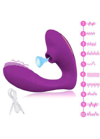 Фіолетовий сіліконовий багатофункціональний десяти швидкісний гнучкий вібратор-прищіпка для одночасної/по чергової вакуумно-хвильової стимуляції клітора і вагінальної мастурбації (добре стимулює передню стінку піхви в тому числі і точку G), водонепроникний, акумулятор, що перезаряджається. Розмір: 11х14 см., висота частини, що вводиться - 11,7 см., діаметр частини, що вводиться - 3,6 см., діаметр отвору вакуумно-хвильової стимуляції - 1,7 см. Вага 172 грам. Швидкість – 10 режимів вакуумно-хвильової стимуляції та 10 режимів вібрації. Заряджання від USB-кабелю (у комплекті), штекер в розетку - не входить у комплект.