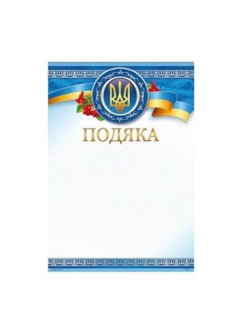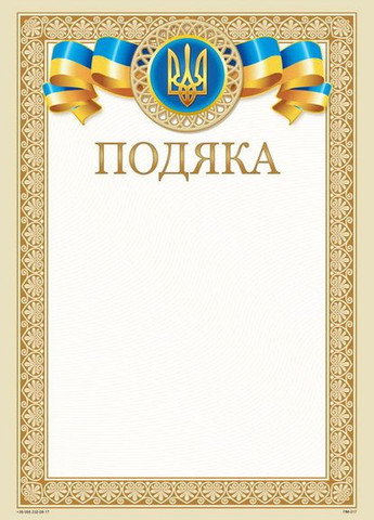 ВЕСЬ асортимент на нашому сайті Нам можна довіряти: наших клієнтів Бланк "Подяка" з гербом і прапором Формат А4 Розмір: 20,5х29,5 см Папір крейдований Щільність паперу 170 г/м2