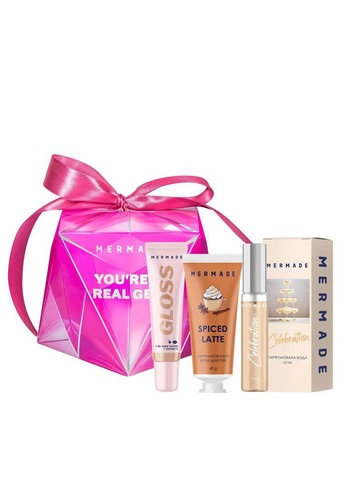 Парфумований набір косметики для догляду за тілом Mermade Blue Crystal 3 в 1 для жінок Ви — дорогоцінний діамант і гідні найкращих подарунків. Як-от парфумований набір для тіла Mermade Blue Crystal. У стильній коробочці у формі кристала — три мастхев-продукти, які допоможуть жінці та дівчині завжди бути в центрі уваги та приймати заслужені компліменти. Склад жіночого подарункового набору косметики Blue Crystal 3 в 1 від Mermade Цукровий скраб для тіла Mermade Coco Jambo, 250 г Очищає шкіру від лущення, прибирає сухість, роблячи її гладкою і сяйною, немов шовк. У складі скрабу для пілінгу тіла — олія авокадо та рисова пудра, які творять справжні дива з вашою шкірою — зволожують, живлять, роблять м'якою та сяйною. Аромат тропічного кокоса подумки перенесе вас на тропічні острови, де цілий рік сонце, теплий пісок і блакитний океан. Парфумований спрей для тіла Mermade Sweet Gossip, 100 мл Теплий аромат для душевних зустрічей із подругами, коли хочеться повеселитися і трохи попліткувати, розкрити секрети, про які більше нікому не розповісте. Sweet Gossip — це ніжний квітковий аромат, який огортає вас теплою легкою хмаркою. Верхні ноти: ягоди лічі, освіжний бергамот і стиглий персик. Ноти серця: білий жасмин, півонія й апельсиновий цвіт. Базові ноти: мускус, мох і деревна кора. Зволожувальний бальзам для губ Mermade Bubble Gum, 10 мл Ця гігієнічна помада зволожить шкіру, прибере сухість і лущення, допоможе, загоїти тріщини. У тюбику бальзаму — комплекс рослинних олій і чудовий настрій завдяки аромату жувальної гумки. Те, що потрібно для останнього штриха вашого образу! Парфумований набір жіночої косметики Mermade Blue Crystal з корисними б'юті-штучками гарантовано потішить не тільки вас, а й ваших близьких. Вибирайте його в подарунок на Новий рік, Різдво або День народження, щоб почути щире «дякую»!