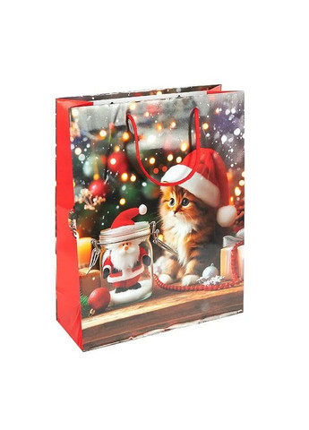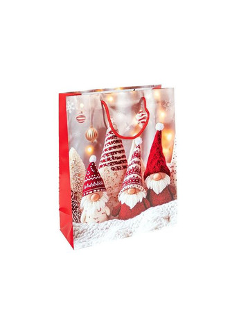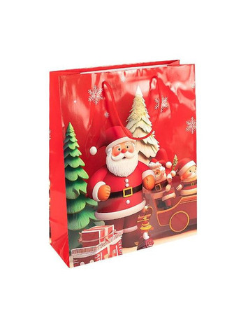 Подарунковий пакет новорічної серії розміром 18×21,5×8 см — стильне рішення для святкового пакування невеликих подарунків, солодощів і сувенірів. Виготовлений з щільного ламінованого паперу з глянцевим покриттям, стійким до вологи і пошкоджень. Яскравий дизайн із зимовими та новорічними мотивами створює атмосферу затишку та радості. Зручні шнуркові ручки забезпечують комфорт під час перенесення.
