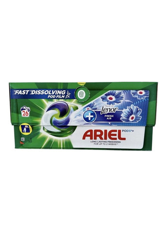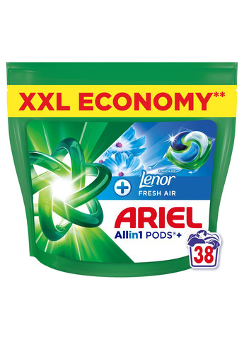 Ariel, рекомендований компаніями Whirlpool, Electrolux, Candy та Beko, представляє капсули з рідким засобом для прання Ariel PODS+ Все-в-1 Lenor Дотик Свіжого Повітря. Завдяки додатковій блакитній камері вони забезпечують глибоке очищення та довготривалу свіжість до 7 днів (при зберіганні). Вони створені для бездоганної роботи навіть при циклах за низької температури, швидко розчиняються навіть у холодній воді та забезпечують бездоганні результати. Для досягнення найкращого результату спочатку покладіть капсули у задню частину пустого барабана, а зверху покладіть одяг. УВАГА: цей продукт може бути небезпечним і завдати серйозної шкоди здоров’ю. Завжди зберігайте капсули для прання Ariel PODS Все-в-1 в недоступному для дітей місці. Відвідайте для отримання детальної інформації. - ГЛИБОКЕ ОЧИЩЕННЯ ТА ЕКСТРАСВІЖІСТЬ: капсули для прання Ariel PODS+ Все-в-1 забезпечують глибоке очищення та довготривалу свіжість протягом 7 днів (при зберіганні речей) - РЕКОМЕНДОВАНИЙ ВИРОБНИК ЗАСОБІВ ДЛЯ ПРАННЯ: Ariel рекомендовано компаніями Whirlpool, Electrolux, Candy та Beko - ШВИДКО РОЗЧИНЯЄТЬСЯ НАВІТЬ ЗА НИЗЬКИХ ТЕМПЕРАТУР: капсули Ariel PODS+ Все-в-1 швидко розчиняються навіть за низьких температур - ЯК КОРИСТУВАТИСЯ КАПСУЛАМИ ARIEL PODS: покладіть спочатку капсули, а потім — білизну, щоб видалити стійкі плями навіть у холодній воді - Переробка відповідно до місцевих рекомендацій - ЛЕГКІСТЬ У ВИКОРИСТАННІ: не потрібно нічого вимірювати та наливати, потрібна лише одна таблетка для прання Ariel PODS Все-в-1 - ІДЕАЛЬНО ДЛЯ ПРАННЯ, А НЕ ДЛЯ МАЛЕНЬКИХ РУЧЕНЯТ завжди зберігайте капсули Ariel PODS+ Все-в-1 в недоступному для дітей місці. Відвідайте вебсайт для отримання детальної інформації
