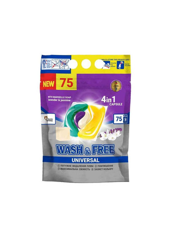 Побутова хімія Капсули та таблетки для прання Капсули для прання Капсулі для стирки, Капсули для, Капсули для прання, Капсули для прання для, Капсули для прання для всих, Капсули для прання для всих типів білизни 75шт з милом Жасмин та лаванда ТМ WASH FREE