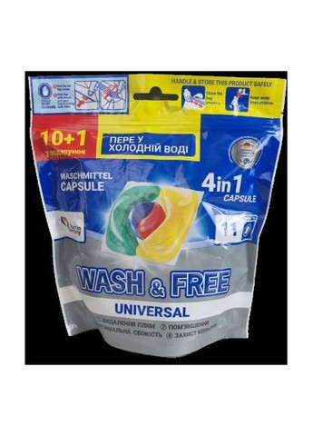 Wash&Free - 4-х камерні капсули для прання 4 в 1: Видалення плям, пом'якшування, максимальна свіжість, захист кольору. Не рекомендується для прання виробів із вовни та шовку.