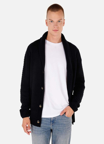 Кардиган з капюшоном з м'якої трикотажної суміші вовни, нейлону та альпаки. Капюшон на підкладці, застібка-блискавка спереду, спущена лінія плеча, ребристі манжети та низ. Вільний крій.