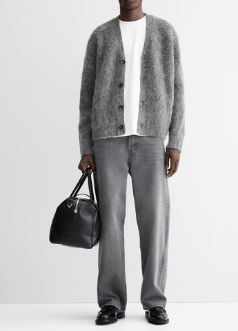 В'язаний кардиган з м'якої вовни з глибоким V-подібним вирізом та ґудзиками спереду. Вільний крій, вільний, але не об'ємний.