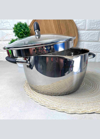 Каструля ARDESTO Gemini Liguria об'ємом 6 літрів — містка модель для щоденного приготування супів, варіння овочів, м’яса чи великих порцій страв. Корпус виготовлено з нержавіючої сталі, дно товщиною 3 мм рівномірно прогрівається та не дає стравам пригоріти. Мірна шкала всередині дозволяє точно дозувати інгредієнти. Скляна кришка оснащена отвором для виходу пари. Дві сталеві ручки надійно прикріплені за допомогою подвійного клепального кріплення з упором — витримують навантаження та активне щоденне використання. Каструля важка, стійка, її можна використовувати на всіх типах плит, включно з індукційними. Підходить для миття у посудомийній машині. Характеристики: Тип: каструля з кришкою Об’єм: 6 л Діаметр: 24 см Матеріал корпусу: нержавіюча сталь Матеріал ручок: нержавіюча сталь Матеріал кришки: скло з отвором для пари Товщина стінки: 0,5 мм Товщина дна: 3 мм Колір: нержавіюча сталь Кріплення ручок: подвійна заклепка з упором Сумісність: газові, електричні, склокерамічні, галогенні, індукційні плити Особливості: мірна шкала, отвір для пари Можна мити у посудомийній машині: так Країна виробництва: Китай