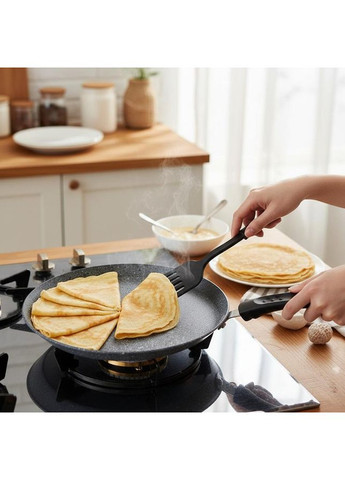 Сковорода bohmann має привабливий вигляд і практичність, неодмінно стане важливим доповненням до Вашої сучасної кухні. Допоможе Вам втілити в життя різноманітні рецепти млинців. Для приготування смачних і ароматних млинців або оладок, для тоненьких млинців і справжніх млинцевих пирогів. У ній також дуже зручно робити омлети, яєчні та інші подібні страви. Млинниця потребує ретельного очищення від жиру і пригорілі залишки їжі, не можна чіпати сковорідку будь-якими гострими предметами, так як можна подряпати або пошкодити покриття, мити тільки м'якою губкою, ні в якому разі не металевою, не кидати і не залишати в духовій шафі. Протирати махровим рушником або спеціальною бавовняною серветкою. Характеристика: Тип: сковорода для млинців Матеріал: алюміній Матеріал ручки: бакеліт Мармурове покриття антипригарне Діаметр: 22 см Висота: 1.8 см В комплекті лопатка для млинців Форма: кругла Колір: сірий Виробник: Bohmann