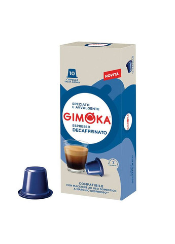 кава у капсулах Gimoka Soave Decaffeinato для Nespress це декофеїнізований еспресо з інтенсивним та насиченим ароматом. Завдяки вибору сумішей, вивчення їх обсмажування та процесу природного декофеінізірування, кофе зберігає незмінні смакові якості напою.