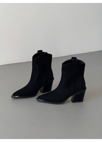 Модель виготовлена з натуральної замші, має м’яку, матову текстуру та продуману конструкцію. Підошва синтетична з амортизацією, що забезпечує комфорт і стійкість. Модель без застібки, що додає практичності й сучасного вигляду. Довжина устілки — 25 см (р.38), висота підбору — 2,5 см, висота чобота разом із каблуком — 24,5 см.