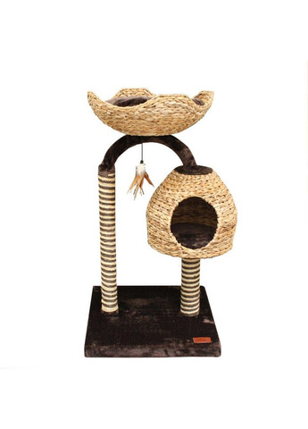 Дряпка (драпак) для кішок з будиночком CROCI Natural Blossom - виготовлена з міцних натуральних матеріалів, таких як сизаль, джут, водяний гіацинт, бананове листя, з м'якими та затишними плюшевими сидіннями. Форма і елегантність матеріалів доповнюють обстановку, в якій знаходиться кігтеточка. Дряпка - необхідний аксесуар у будинку, де є кішка. Сточування кігтів - природна потреба цих ласкавих вихованців, і для її задоволення вони можуть використовувати дивани, столи, двері. Але такий варіант зазвичай не влаштовує господарів, тому спеціальна ганчірка дасть змогу вирішити відразу два завдання: - задовольнити бажання кішки поточити кігті; - зберегти в цілості меблі, стіни, килими та інші предмети. Переваги цієї кігтеточки: Задовольняє природну потребу кішок точити кігті. Допоможе уникнути псування стін, домашніх меблів та інших предметів інтер'єру. Міцна мотузка витримує кігті навіть найактивніших котів. Застосування: привчати точити кігті необхідно кошенят до 6-тижневого віку. Якщо вихованець не знайомий з кігтеточками, його можна привчати, застосовуючи котячу м'яту або спрей для залучення до гри. Рекомендується розміщувати кігтеточку в коридорі або на кухні, а не у вітальні та спальні. Розмір: 50x50x87,5 см