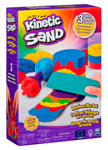 Набір піску для дитячої творчості Kinetic Sand (Кенетік Сенд) Райдужний мікс - містить все необхідне для змішування і створення кольорів веселки! Набір містить 3 основних кольори кінетичного піску (по 127,6 г червоного, жовтого і синього кольорового піску), з яких шляхом змішування можна створити інші кольори У наборі 6 інструментів для творчості: 3 форми у вигляді замку, прозора циліндрична форма для заповнення, прес з 4 насадками різної форми і слайсер. Змішуйте нові кольори, за допомогою преса з різними насадками заповнюйте форму і створюйте фантастичні візерунки! Основні переваги: кінетичний пісок натурального і фіолетового кольору - можна експериментувати і змішувати кілька кольорів упаковка піску 2 в 1: формочка у вигляді черепашки для ігор і контейнер для збереження піску кінетичний пісок виготовлений з натурального піску (98%) і спеціального сполучного матеріалу (2%), який створений для більшої пластичності ліплення доброчинно впливає на розвиток дитячої психіки, знімає стрес, заспокоює пісок залишає все поверхні абсолютно чистими, не розчиняється у воді цей пісок - несприятливе середовище для розмноження бактерій, не викликає алергії та абсолютно безпечний гра з Kinetic Sand розвиває уяву, дрібну моторику, творчі навички, кругозір Характеристики У наборі: кінетичний пісок 6 інструментів для творчості Кольори: червоний, жовтий, синій Вага: 383 г Виробник: Kinetic Sand, Швеція. Рекомендовано для дітей від 3 років.