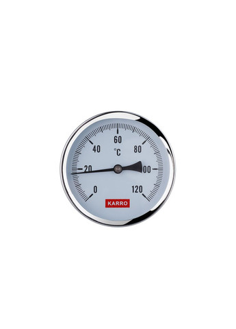 Термостат накладний Karro 90°С KR-1090 - це контактний (на трубний) електричний термостат з рідинним термоелементом і перемикаючими контактами. Термостат реалізує фактор вимірювання, зміни температури теплоносія в трубі (замикає, або розриває електричний ланцюг). Тепло передається електричному термостату за допомогою сталевої задньої стінки. Монтаж термостата можливий на трубах діаметром від 3/4" до 4" за допомогою сталевої пружини, що додається, яка забезпечить надійне зчеплення з трубою. Термостат використовується для автоматичного регулювання котлів, теплових насосів та іншого обладнання (циркуляційний насос, сервопривід, вентилятор тощо). Накладний термостат з пружиною Karro є незамінним пристроєм при створенні сучасних і реконструкції старих систем опалення. Він дає змогу завжди тримати в приміщенні постійну температуру повітря. Водночас прилад простий у монтажі, оскільки під час його встановлення немає потреби у врізці в труби або інші ділянки опалювальної системи. Завдяки цьому приладу здійснюється автоматичний контроль температури повітря в будинку шляхом зміни роботи котла нагріву. Цей пристрій і в відлигу, і в лютий мороз забезпечить комфортні умови проживання і дуже велику економію грошей. Це пов'язано з тим, що він запобігає перегріву, змушуючи автоматику зменшити подачу палива. Якщо ж різко похолодало, то станеться все навпаки і будинок прогріється до необхідних значень. Датчик кріпиться на трубу або резервуар із теплоносієм. Для фіксації використовують велику стрічкову пружину, що йде в комплекті. Її надлишки можна потім видалити кусачками. Термостат має щільно прилягати до поверхні, між ним і трубою не повинно бути ізоляції або інших предметів, що перешкоджають точності вимірювання.