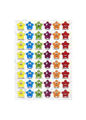 Оцінююча наклейка – 1 аркуш Набір яскравих мотиваційних наклейок для заохочення дітей! На одному аркуші розміщені 6 різних написів: «Старайся», «Добре», «Молодець», «Гарно», «Чудово», «Відмінно». Ці наліпки ідеально підходять для вчителів, вихователів і батьків, щоб підтримувати успіхи дітей у навчанні, творчості та повсякденних справах. Завдяки позитивним написам, дитина відчуває гордість за свої досягнення й мотивується на нові перемоги. Кількість: 1 аркуш Матеріал: яскравий самоклеючий папір Призначення: для щоденників, зошитів, малюнків, подарунків Переваги: розвивають мотивацію, створюють позитивну атмосферу, зручні у використанні Це чудовий спосіб зробити навчання цікавішим і підтримати дітей у їхніх стараннях!