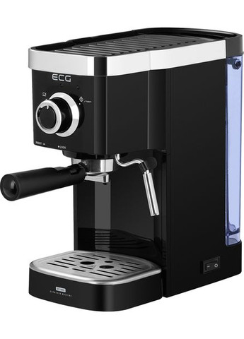 Рожкова кавоварка еспресо ECG ESP 20101 випускається в елегантному сучасному дизайні в корпусі з нержавіючої сталі та чорного пластику. Апарат потужністю 1140 Вт обладнаний насосом, що створює тиск 20 бар, і використовує для приготування напоїв мелену каву. Вода заливається у знімний резервуар об'ємом 1,25 літра із зручною ручкою. Популярний напій з молоком капучино готується в ручному режимі, використовуючи спеціальну трубку, що спінює, зі знімною гумовою частиною. Пристрій має функцію підігріву посуду і здатний виробляти розлив одночасно в дві чашки. Чистота на робочій поверхні підтримується за допомогою дренажного відсіку, в якому збираються краплі, що утворюються. Рожкова кавоварка еспресо ECG ESP 20101 встановлена на нековзкі ніжки та оснащена захистом від перегріву та надлишкового тиску.