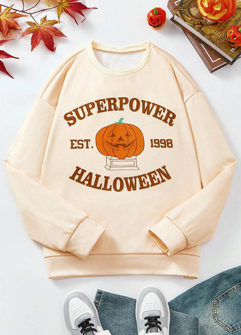Повсякденна вільна толстовка пудрового кольору з гарбузовим принтом і букв для дівчаток-підлітків на Хеллоуїн.