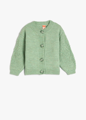 Колір Фісташковий / Візерунок Меланж / Фактура В'язана / Застібка На гудзиках / Сезонність Демісезон / Матеріал Акрил / Склад 80% акрил, 20% поліестер