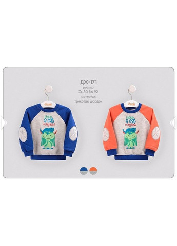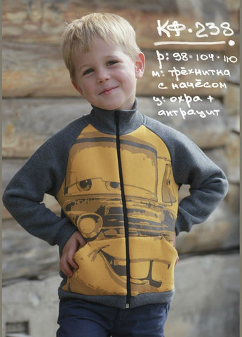 Кофта спортивна на хлопчика від ТМ Бембі. Кофта застібається на блискавку. З боків 2 врізні кишені. Оздоблена принтом.