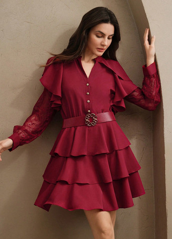 Матеріал Поліестер, Гіпюр / Колір Бордовий / Фасон Кльош-сонце, Сукня-сорочка / Довжина виробу Міні / Стиль Коктейльний