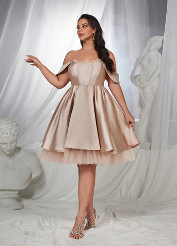 Матеріал Поліестер / Колір Бежевий / Фасон Кльош-сонце, З відкритими плечима, З відкритою спиною / Довжина виробу Міді та нижче коліна / Стиль Святковий, Коктейльний, Вечірній