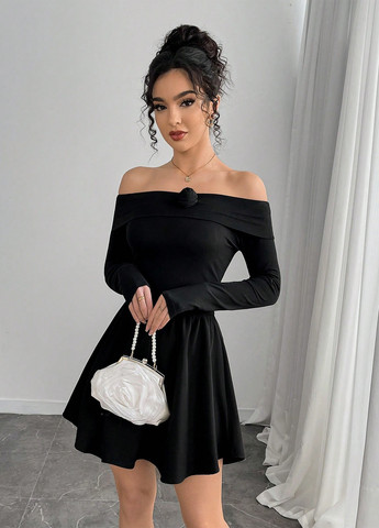 Матеріал Шифон / Колір Чорний / Фасон З відкритими плечима, А-силует, Кльош, Бебі долл, Кльош-сонце, З пишною спідницею, З відкритою спиною / Довжина виробу Міні / Стиль Святковий, Коктейльний, Вечірній