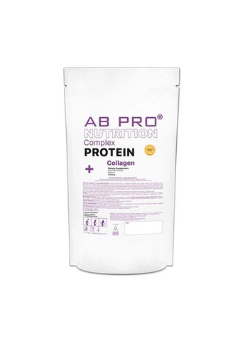 PROTEIN COMPLEX + COLLAGEN AB PRO® - Комплексний протеїн (білок 65%) з яскравими смаками, який чудово підійде як для набору м’язової маси, так і для жироспалення. Для набору маси оптимально розчиняти протеїн у знежиреному молоці, а для сушки і роботи на «суху м’язову масу» - у воді. Недоцільно збільшувати порцію у міксуванні з молоком, адже молоко теж має в своєму складі білок і порція може виявитися надмірною. Колаген в складі продукту, забезпечує якісне живлення суглобово-зв'язочного апарату, шкіри і волосся. Для створення позитивного азотистого балансу і росту м’язів важливо не перевищувати необхідну норму споживання білку із коктейлів. Споживання протеїну на добу не може перевищувати кількості прийомів їжі. Для збагачення дієти краще поєднувати протеїн з носіями харчових волокон (зернові, овочі). Склад: ізолят соєвого протеїну, сироватка суха молочна демінералізована, сироватковий білок (WPC-80), колаген, сухі вершки рослинні, ароматизатор харчовий ідентичний натуральному, лимонна кислота, сіль, сукралоза, барвник (в шоколадних смаках – алкалізований какао порошок) харчовий, сіль. Допоміжні речовини: діоксид кремнію, ксантан, регулятор кислотності (Е451). Поживна (харчова) цінність порції (31 г): білків – 20,2 г, жирів – 0,9 г, вуглеводів – 1,56 г. Енергетична цінність (калорійність) 100 г продукту: 359,1 ккал (1502,5 кДж). Енергетична цінність (калорійність) 1 порції (31 г продукту): 111,3 ккал (465,7 кДж). Умови зберігання: зберігати у сухому, захищеному від світла місці при t 10-25⁰С. Відкриту упаковку зберігати закритою при кімнатній температурі. Спосіб застосування: порцію (1 мірну ложку) збити з 250 мл води, знежиреного молока чи іншого негазованого напою. Для приготування корисної підливки для морозива, при змішуванні треба використовувати 110 мл води на 1 мірну ложку. Вживати протягом дня 2-4 рази між прийомами їжі та після тренування. Протипоказання: підвищена чутливість до компонентів, вагітність, період годування груддю. Перед застосуванням рекомендована консультація лікаря-дієтолога. Не є лікарським засобом.