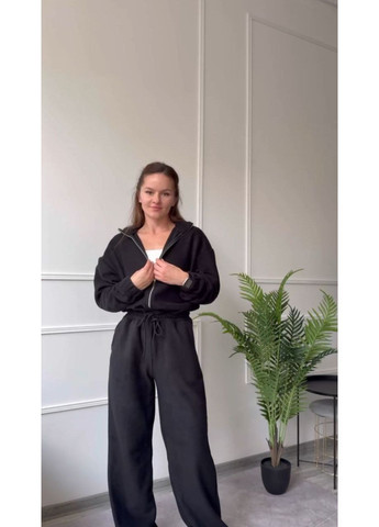 На штанах у боці потайна блискавка, передня частина талії на резиночці. Внизу на штанах спереду розрізи.