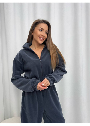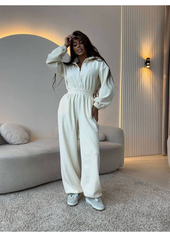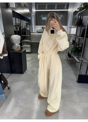 Комбінезон має класичний джинсовий крій з великими накладними кишенями, що додає зручності і функціональності. Верх з перехрещеними лініями та великими кнопками підкреслює стиль і сучасність, в той час як пояс з еластичною вставкою на спині акцентує талію та додає образу ще більше витонченості.