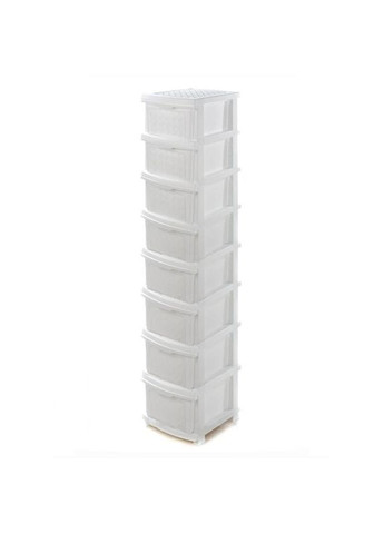Пластиковий комод "Ротанг" виготовлений із якісного вторинного пластику та має 8 шухляд. Цей комод може використовуватися для зберігання будь-яких побутових дрібниць, одягу, взуття, іграшок, інструменту тощо. Комоди з пластику можна використовувати у ванні або душовій або навіть на вулиці, адже пластикові комоди не бояться вологи. Пригоди цього пластикового комода — недорога ціна, сучасний і елегантний зовнішній вигляд, простота у використанні. Зібрати цей пластиковий комод не складе труднощів, ящики збірні. Розмір комода: Висота — 165,5 см Довжина — 43 см Ширина — 34 см