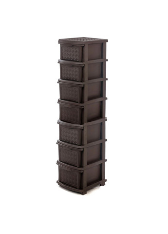 Пластиковий комод "Ротанг" виготовлений із якісного вторинного пластику та має 7 шухляд. Цей комод може використовуватися для зберігання будь-яких побутових дрібниць, одягу, взуття, іграшок, інструменту тощо. Комоди з пластику можна використовувати у ванні або душовій або навіть на вулиці, адже пластикові комоди не бояться вологи. Пригоди цього пластикового комода — недорога ціна, сучасний і елегантний зовнішній вигляд, простота у використанні. Зібрати цей пластиковий комод не складе труднощів, ящики збірні. Розмір комода: Висота — 145,5 см Довжина — 43 см Ширина — 34 см