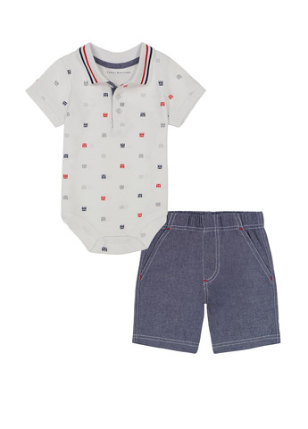Дитячий набір Tommy Hilfiger. Ваш малюк буде готовий до всього в цьому зручному вбранні від Tommy Hilfiger, що включає два фірмові боді та ультрам'які трикотажні штани в тон. Цей комплект необхідний для гардеробу будь-якої дитини, відрізняється фірмовим логотипом і стильним дизайном. Цей комплект ідеально підходить для повсякденного носіння. Боді з коротким рукавом плечі внахлест, застібка на кнопки по внутрішньому шву. Спереду логотип і серце принт. Боді з довгим рукавом плечі внахлест, застібка на кнопки по внутрішньому шву. Легінсис еластичною талією, спереду декоративний бант на поясі. Принт серця на всій поверхні.