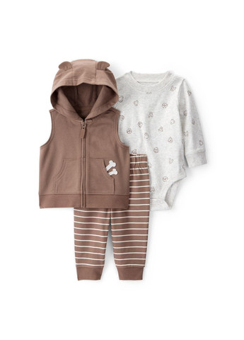 Комплект для дитини від трьох місяців - це те, що бажає придбати кожна мама дитині в осінньо-зимовий період. В наборі у крихітки будуть: - бодік з кнопочками на плечі, щоб процес перевдягання був комфортним для малюка; - штанці з високими манжетами; - шапочка с гострими вушками. Бодік має кнопочки не тільки на плечі а й внизу виробу для зручності при зміні памперсу. Завдяки високим манжетикам на штанцях, ви зможете регулювати розмір дитячих штанів, а відповідно і носити їх довше. В цьому костюмі спинка, животик, ніжки завжди будуть прикриті і крихітці буде тепло та затишно, навіть граючи на підлозі. Чарівності в образ дитини додасть шоколадний колір. Тканина, з якої пошито дитячий набір - інтерлок-пін'є - натуральна на 100%, м'яка і приємна до тіла. Купити комплект для дитини від трьох місяців дуже просто - додавайте позиції в кошик і в день оформлення замовлення все поїде до вас.