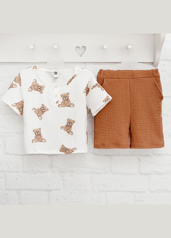 У комплект входять шортики і сорочка на гудзиках, які можна носити окремо. За рахунок того, що вони однотонні, і шорти і сорочку можна поєднувати з практично будь-якими речами в гардеробі. Тканина: муслін Склад: 100% бавовна